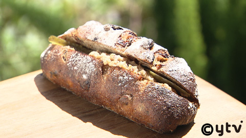 「鶏モモと砂ずりのリエットレーズンサンド」:350円(税抜き)