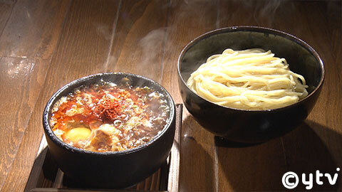 「辛醤つけ麺」890円(トッピング:月見玉子70円)