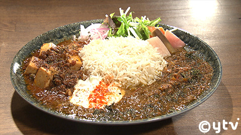 「合挽きキーマカレーと麻辣豆腐カレー2種のあいがけ」