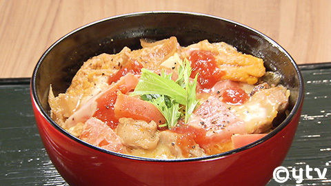 「トマトチーズ親子丼」店:790円(税込み)※味噌汁、漬物付き