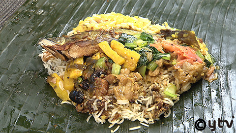 「バナナの葉包み弁当」※中身のスパイス料理は週替わり。