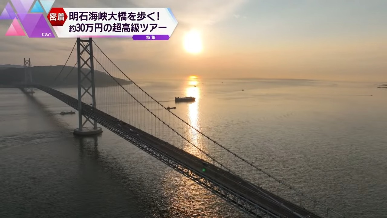 兵庫県神戸市と淡路島を結ぶ、明石海峡大橋。全長は3911m、世界で二番目に長いつり橋です。2024年2月、この橋を味わい尽くす「究極のツアー」が開催されました。このツアーの目玉は「橋に泊まる」こと。貴重な旅行体験のお値段は、1人29万7000円!高い?それとも価値がある?そこで取材班は一泊二日の超高級ツアーに潜入!その気になるツアーの中身とは?