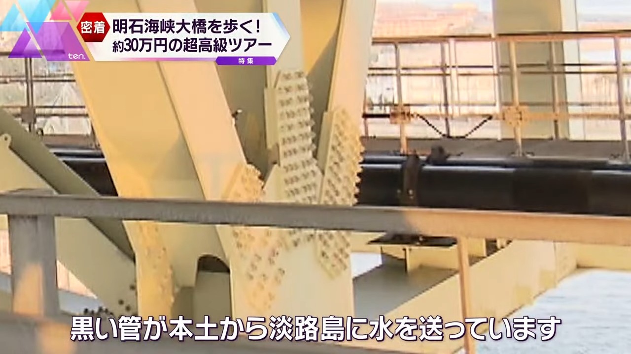 「黒い管が、本土から淡路島に水を送っています。反対側は、蓋がしてあるのでわかりにくいですが、こちらは電力を淡路島に送っています。明石海峡大橋というのは車が走るだけではなく、水や電気、インフラも支えています」