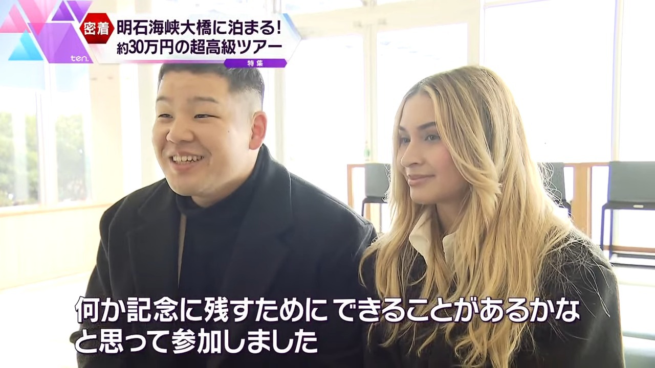 全長3911メートル・世界で2番目の長さを誇る吊り橋『明石海峡大橋』で、普段は入れない場所で絶景を堪能し、“橋に泊まる”という一風変わったツアーが企画されました。お値段なんと、一泊一人29万7000円!その中身とは?大阪から参加した国際夫婦に密着しました。