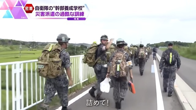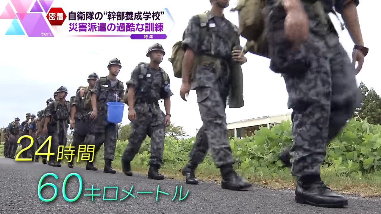 2023年9月。この日、9か月のうちで最も過酷な訓練が始まりました。災害派遣を想定し、重い荷物を担ぎながら24時間行進を続けます。その距離、60km。