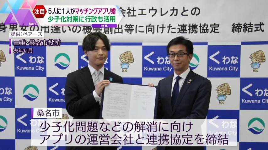 この世間の動きに、行政も注目しています。三重・桑名市は2022年11月、少子化問題などの解消に向け、アプリの運営会社と連携協定を結びました。今後は運営会社の協力の下、アプリの使い方を教える講座を開くなど、「市内の男女の出会いを後押ししていきたい」としています。
