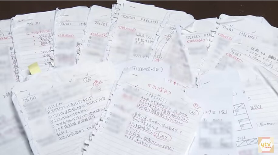 「ノートに書いてはビリビリ破って、ポケットに入れて仕事に行かはるんです。これだけの人を迎えに行って、どこに座ってもらうという、ことを書いて。それが1時間では終わらないんです。晩ご飯が終わってから、深夜0時とか1時まで書いていました」(雅津美さん)