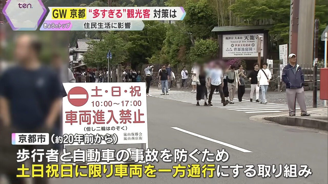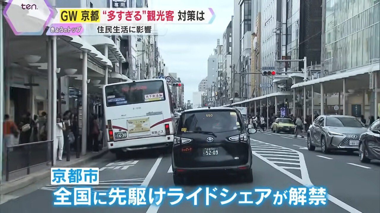 ゴールデンウイークに限らず、京都では多くの観光客が訪れます。その中で、コロナ禍の前から指摘されてきたのが「オーバーツーリズム」です。市バスの混雑や多すぎる観光客による騒音やマナー問題。その解決のため、様々な対策が練られてきました。タクシー不足には、国が推し進める「日本型ライドシェア」を。また、嵐山の観光客と道路の混雑については「一方通行」化、そして、祇園の観光客の私道滞留には「通行禁止」などが検討されています。地域住民の暮らしに大きな影響を与えるこのオーバーツーリズム、GW時の京都での対策はどうだったのか、“現在地”を取材しました。