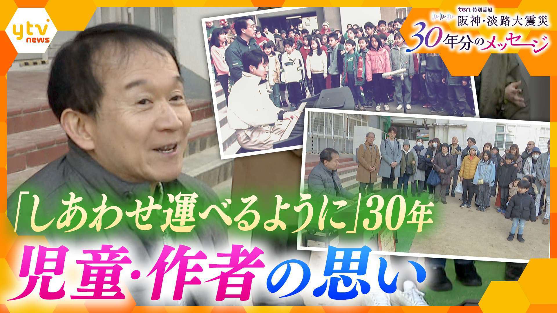 阪神・淡路大震災からの復興を願い作られた歌「しあわせ運べるように」。神戸市の教諭だった臼井真さんが、三宮の町の惨状を見て、頭に沸き上がった歌詞を書き留め作られました。当時赴任していた学校で“初めて”歌った児童らが当時を再現。その時は、参加者の誰もが思いもしませんでしたが、その後歌は、阪神・淡路以外の被災地にも広がり、新潟県中越地震や東日本大震災の被災者にも影響を与えました。中には「歌に巡り合わなければ自殺していた」という人も。歌を最初に歌った当時の児童は、何を思うのか?受け止めた被災者のその後は?30年歌い継がれたことを作者はどう感じているのか?