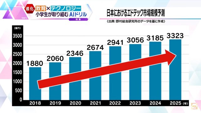 新型コロナウイルスの感染拡大によって、オンライン学習が増加したことなどを背景に、急速に導入が進んだエドテックですが、野村総合研究所は、その市場規模が右肩上がりに拡大すると試算しています。2020年当時の文部科学省・萩生田光一大臣も「ICT(情報通信技術)を活用することで、家庭学習を含め、全ての子どもの学びを保障できる環境を早急に実現してまいりたいと思います」と表明しています。