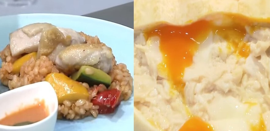 大会には、堀さんを含む4人のシェフが参加しました。制限時間は50分で、手際の良さも審査対象です。堀さんは緊張しながらも、白い卵を丁寧にかき混ぜていきます。他のシェフたちも、手際良く作業を進めます。炭パウダーとケチャップを混ぜて作る真っ黒のチキンライスや、チーズをバーナーでトロトロに炙ったチーズタッカルビ風など、それぞれが独自のアレンジを施します。