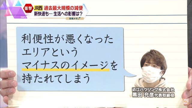 「今回、昼間とはいえ新快速が減便したというのは、結構インパクトがあります。(新快速が減った地域は)今後の発展という意味ではどうなんだろう?というイメージをもたれると思います。中長期的にみれば影響がジワジワ出てくるのではないでしょうか…」