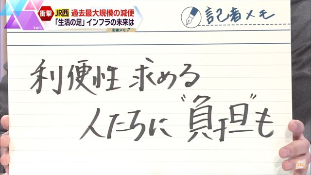 「今回、昼の時間帯に1時間2本だったのが1本に減便したんですが、不動産事業者からは、物件を買うときに『利便性が悪くなった』というマイナスイメージが定着すると、なかなか(そこに住もうという)最終判断にならないのではないか、という懸念の声が聞かれました。鉄道というのは、その地域の経済にも大きくかかわるものですので、今後、減便が地域にマイナスに影響する懸念があります」