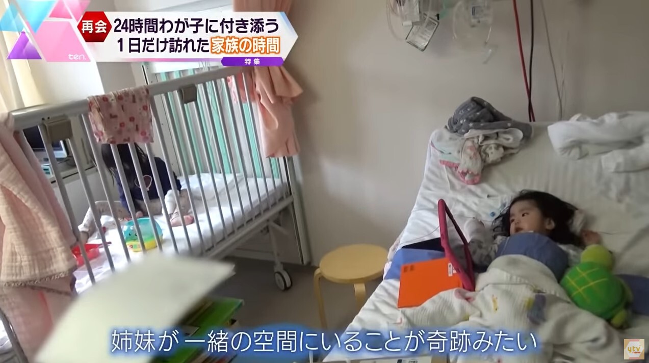 中村さん一家に、一日だけ家族の時間が許されました。長女・みおちゃん(仮名)の心臓に異変がないか、検査入院をすることになったのです。姉妹は、幸音ちゃんが生後1か月で救急車で運ばれた日から約2年間、会っていませんでした。両親が、姉妹の再会を見守ります。