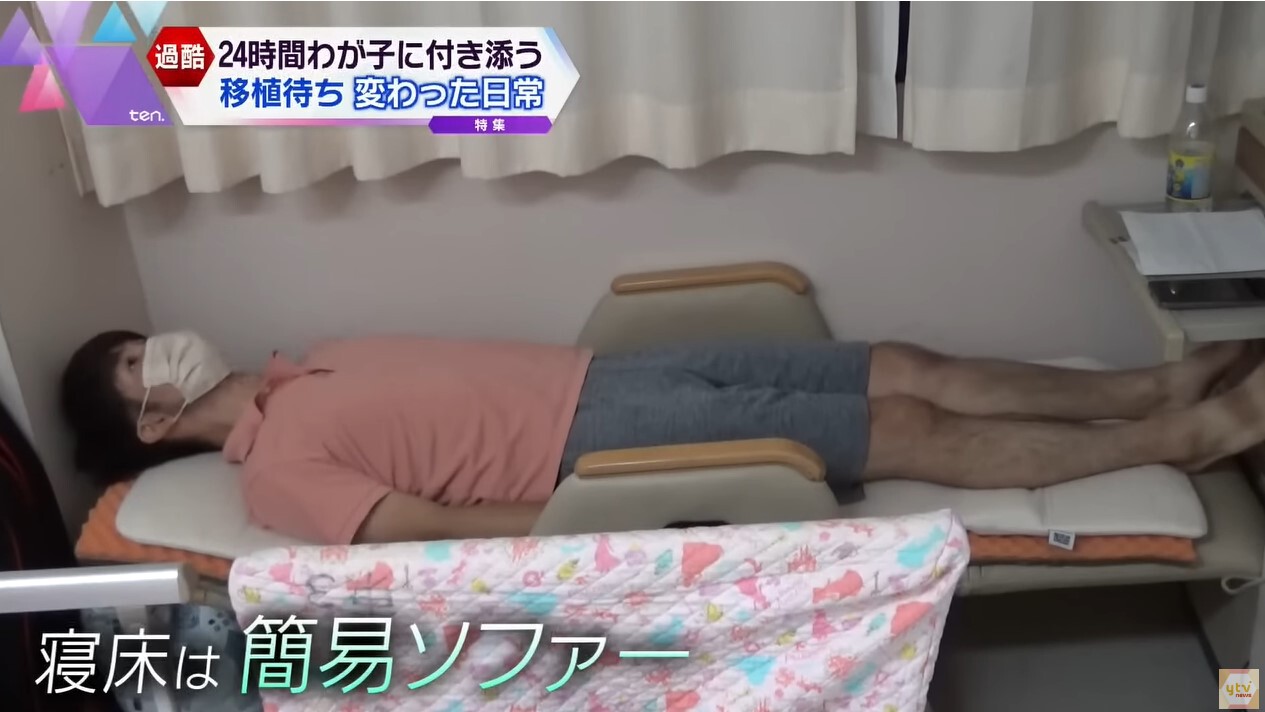 付き添いの親にはベッドがなく、睡眠は簡易ソファーを目いっぱい倒して取ります。隙を見てシャワーや洗濯もしますが、諦める日もあるといいます。食事も、病院からは出ません。