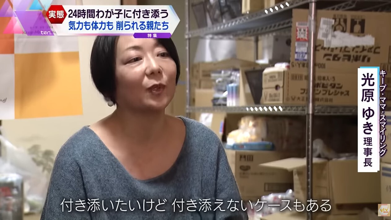 「NPO法人キープ・ママ・スマイリング」の光原ゆき理事長は、自身も2人の子どもの付き添いで6か所もの病院に泊まり込んだ経験があるママです。光原さんの所には約3600人分の声が集まり、当事者からの声に応えて、食事や生活用品を届けています。「必要なのは、食や睡眠などの環境を改善して、子どものために親も元気でいることだ」と、光原さんは訴えます。