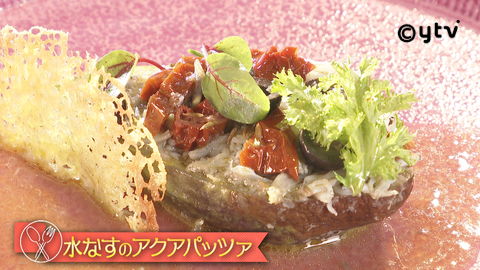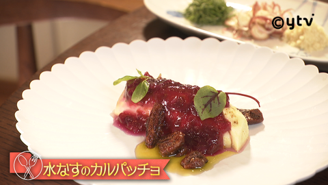 6.薄切りにした水なすに4で冷やしたジャムとオリーブオイルをかけて完成