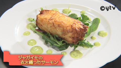 ① ジャガイモの皮を剥き、スライサーで薄く切ってから包丁で千切りにする