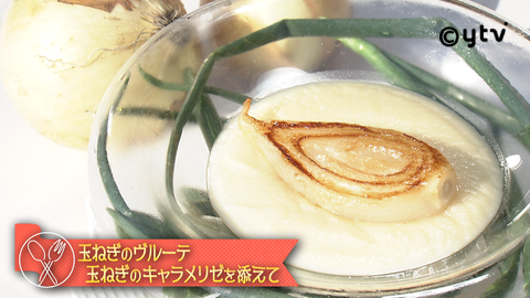 ①玉ねぎのブルーテのピュレをソースの濃度で水で調整する。