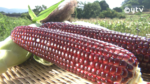 実と芯に分けて芯を合わせ出汁と一緒に15分ほど弱火で火にかけ出汁に紫色の色素を出す。