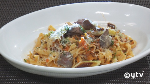 「砂肝のコンフィと岩津ネギのローストを添えた 砂肝のボロネーゼ」