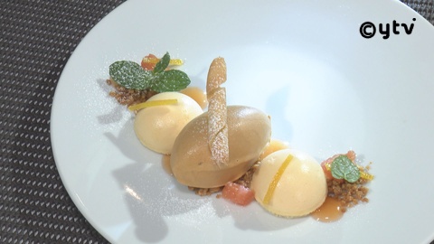 「グレープフルーツのシブースト風 淡路牛乳のキャラメルアイス」