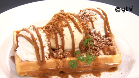 「ブリュッセルワッフル バニラアイス・ビスコフクランブル添え」 1680円