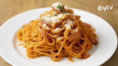 水で戻すことでパスタのモチモチ感を増やし、より美味しいナポリタンに仕上がる。