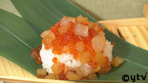 ●えびす横丁・おにぎりごりちゃんえびす横丁店「極海の贅沢3種盛り」…1500円(税込み)