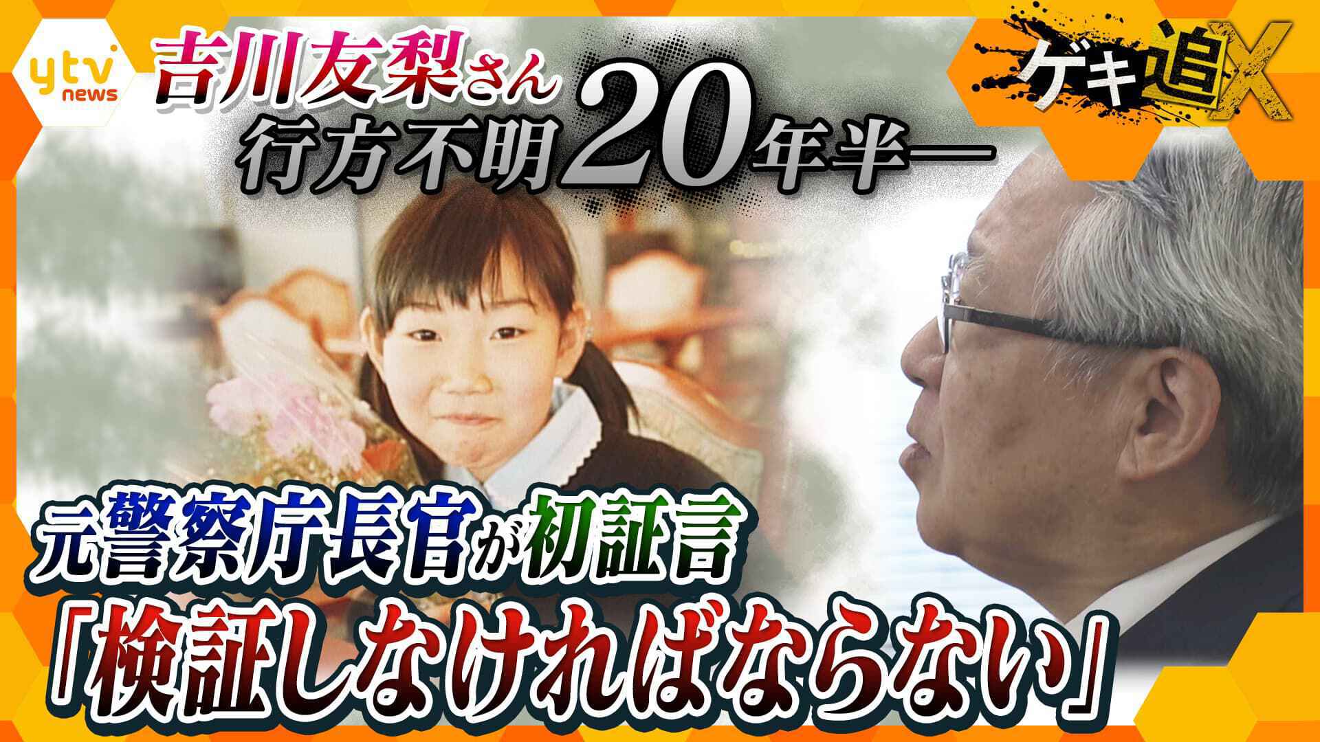 2003年5月20日、大阪府熊取町で吉川友梨さん(当時9歳)が下校途中に行方不明になった事件から20年半、両親は改めて情報提供を求めました。「諦めることは絶対ない」と以前語った思いは「今も変わらない」といいます。かつて警察庁長官、大阪府警本部長を務め、友梨さんの事件発生時に刑事部長として捜査を指揮した人物が、テレビカメラを前に初めて当時を振り返りました。開口一番に発したのは謝罪の言葉。初動捜査、情報の公開、判断の積み重ねの先に結果が出ていないことを重く受け止めていました。