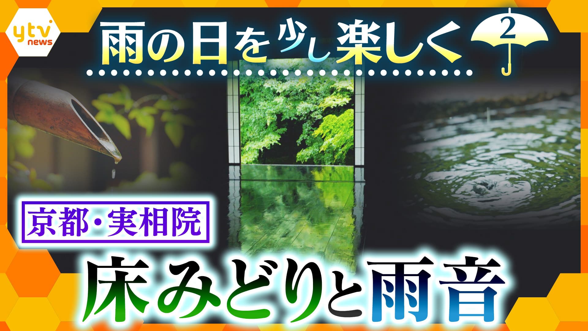 「雨の日を少し楽しく」がテーマのこのシリーズ。今回は雨に煙る京都の古刹・実相院で、雨の日ならではの「音」や「色彩」を楽しむ人々の姿をお届けします。静寂の中聞こえる雨の日ならではの音の数々や、木々の深い緑色をお楽しみください。 -