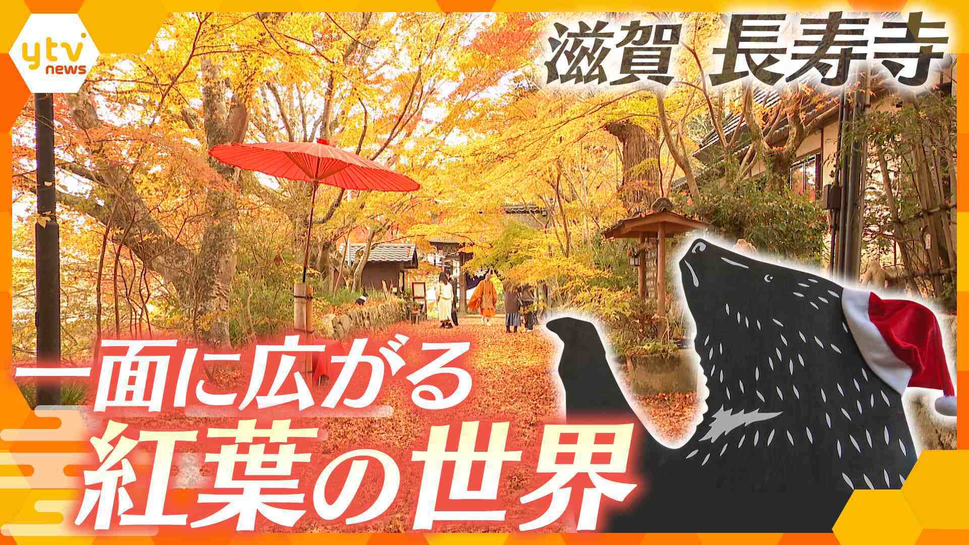 国宝「長寿寺」 冬を彩る一面のもみじと可愛らしい“動物”が人々を魅了 赤から黄色のもみじの絨毯のグラデーション 夜のライトアップも魅力