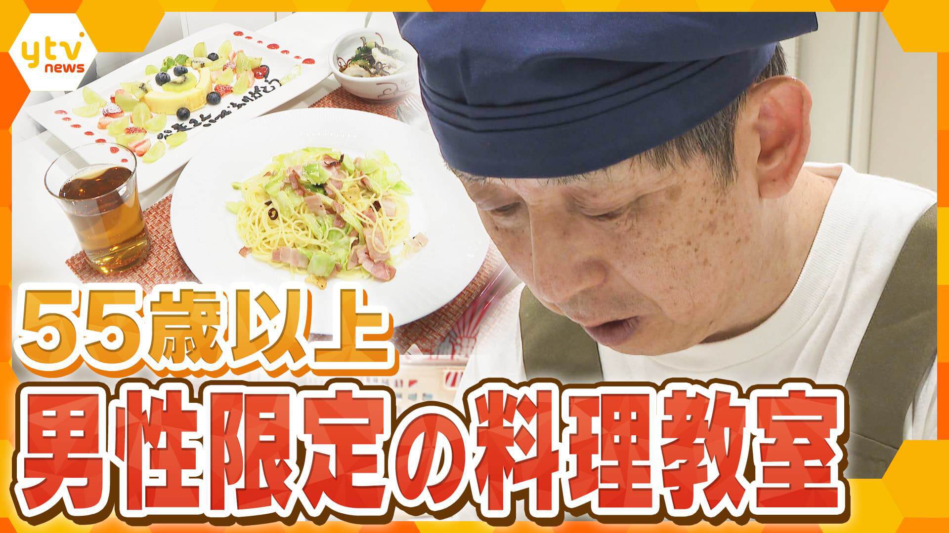 あべのハルカス近鉄本店で開かれたのは「超初心者」「55歳以上」「男性限定」の料理教室。3回のレッスンで基礎を学んだあと、「大切な人」を招待して料理を振る舞うことが目標です。「変化が少ない毎日に新たな目標がほしい」「母の思い出の味を孫に振る舞いたい」さまざまな思いで料理教室に通う男性たちを取材しました。
