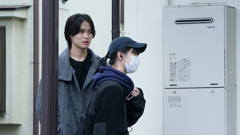 11月下旬、底冷えする寒さの中で、記憶を失くす前の芽衣が住んでいたとされる自宅アパート前にて最初のシーン撮影となった小野と小池。スタッフからの出演者紹介が終わると、早速監督との段取りを確認して撮影がスタートした。