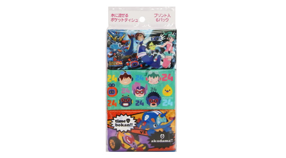 タイムボカン24のポケットティシュ♪水に流せて便利!中身のティシュもキャラクターのプリント入り♪