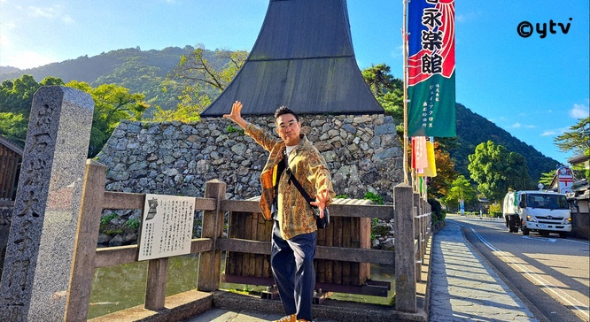 旅のはじまりは兵庫県・豊岡市にある但馬の小京都といわれる出石から。八嶋は武士の時代にタイムスリップしたような町並みを歩き、ひときわ目立つ時計台「辰鼓楼」について町の人たちに話を聞く。「出石城跡」からは町が一望できる。時を告げる太鼓の音を聞きながら、八嶋は旅のはじまりを宣言する。