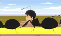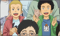 自分を『お兄ちゃん』と呼ぶ新田に対し、ムッとする六太。しかしすぐにニッと親指で自分を指すと、軽やかな笑顔を浮かべた。