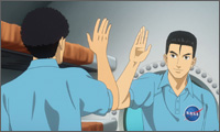 ラブの先導で、特殊な潜水服を着込んだ六太は、さっそく船外活動に勤しんでいた。自分の重さを調節しながら、月面を想定して動くのだ。最初はなかなか慣れない六太だったが、ケンジに励まされ、協力しながら、楽しい訓練初日を終えることができた。