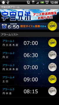 「宇宙兄弟お知らせアラーム」は六太・日々人・アポのアプリ限定イラスト&ボイスが、アニメが始まる時間をお知らせ!!