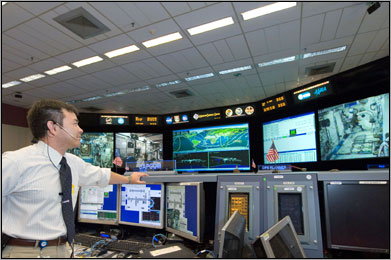 「珍しく(?)、Yシャツ(にネクタイ)姿でたくさんのモニターをのぞく姿は真剣そのもの!これは宇宙飛行士としての訓練・業務ではなく、キャプコム(CAPCOM:Capsule Communicator)と呼ばれる地上運用管制員を 務めたNASAジョンソン宇宙センターでの1シーン。宇宙ステーションに滞在する宇宙飛行士との交信役としての経験は、自分が宇宙に滞在する時、どんな風にコミュニケーションを取るのが良いのか、きっと良い経験につながるはず。僕の宇宙ステーション滞在中、CAPCOMをはじめ、地上から支えてくれる運用管制チームの皆さん、よろしくお願いします」