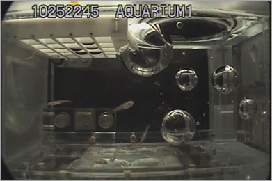 後半の宇宙滞在を共に過ごしたのはアメリカ人クルーのケビン、ロシア人のオレグ、エヴゲニーだけではなく、32匹のメダカも僕らの仲間でした。実験のためにISSに運ばれてきた彼らは、閉鎖されたISSという空間で暮らす僕たち6人にとってある意味、“癒し”になっていたかも。魚の様子を見に行くのは仕事であり、また楽しみでもありました。そのうちの何匹かは、サニータ、ユーリと僕の3人と共に、一緒のソユーズ宇宙船で地球に帰還するし、他のメダカはそのまま宇宙に残って、60日間も宇宙生活するんです。こうした研究が活かされ、メダカの次はどんな生物が宇宙生活できるのか。「宇宙で暮らす」時代は夢ではないね。