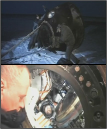 宇宙から地球へ帰還する乗り物=宇宙船。皆さんが真っ先に思い浮かべるのは、スペースシャトルが優雅に滑走路を進み、そこから宇宙飛行士が下りてくる様子ではありませんか?残念ながらスペースシャトルが退役してしまった今、人が宇宙を行き来する乗り物=ソユーズ宇宙船。僕が地球へ帰ってきたのは、このカプセルなのです。ここに3人の宇宙飛行士が多くの荷物と共にギュっと詰まって、高度400キロから帰ってきました。滑走路ならぬ、空からパラシュートにつり下がって着地。その衝撃は・・・。スペースシャトルとソユーズ宇宙船、それぞれで宇宙飛行を経験できたこと、かけがえの無い財産です。