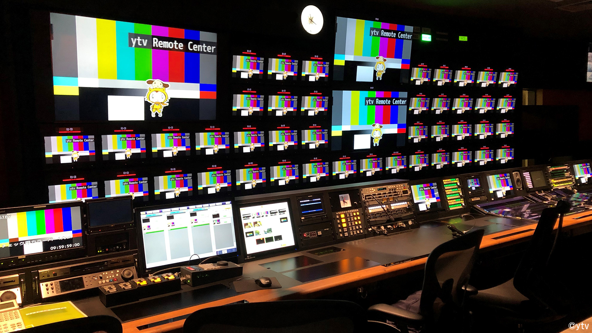 「副調整室(通称:サブ、サブコン)」番組制作時に映像、音声、照明の切替や調整を行う場所