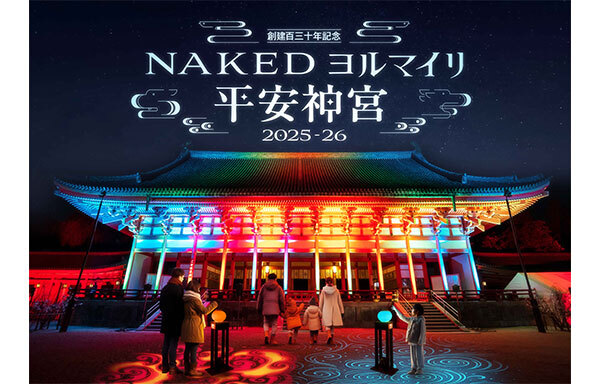 京都・平安神宮で創建百三十年を記念して、年末年始の節目に特別な夜間参拝イベント「NAKEDヨルマイリ 平安神宮」を開催!平安神宮の社殿や神苑が、クリエイティブカンパニーNAKED,INC.の光と演出に