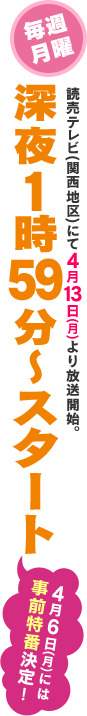 読売テレビ(関西地区)にて4月6日(月)より放送開始