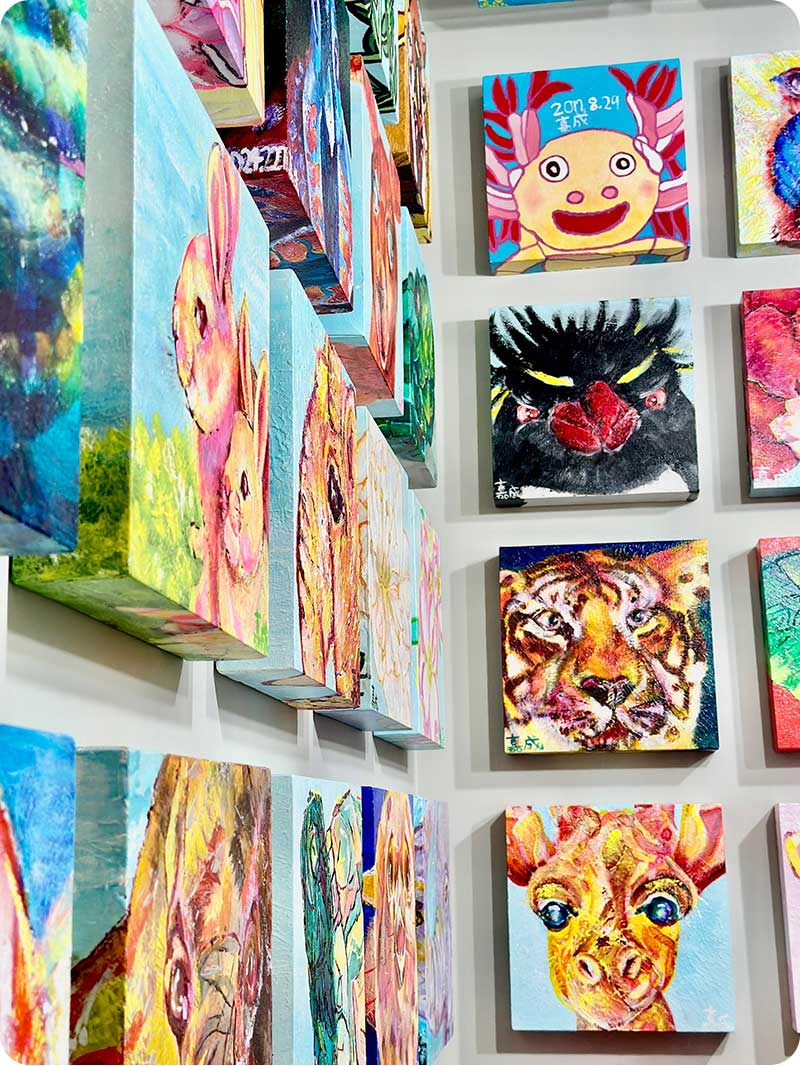 独特の色彩で、カンヴァスの上に、“いのち”を吹き込んでいます。