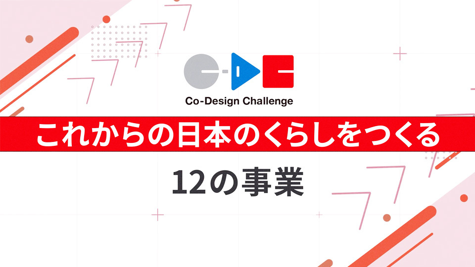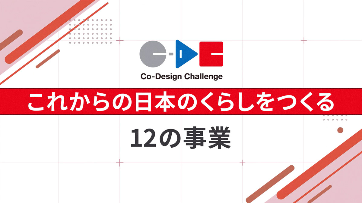「Co-Design Challenge」(以下、CDC)に選定された各事業の内容、進捗状況、プロジェクトにこめた想いや苦労を表現した動画を制作。各事業の担当者のインタビューをベースにして、ノーナレーションで構成。さらに、CDCそのものを紹介する長尺版と短尺版の動画2本、合計14本の動画を制作した。