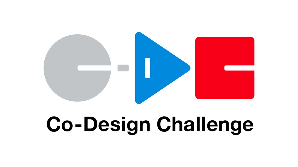 「Co-Design Challenge」プログラムの頭文字「CDC」を〇△□の3つのシンプルな図形で表現。