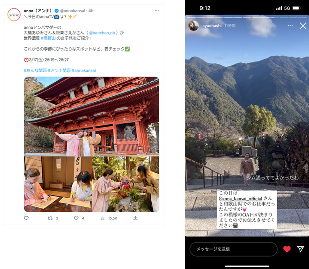 anna公式SNSやアンバサダーのInstagramで3エリアの魅力を発信。