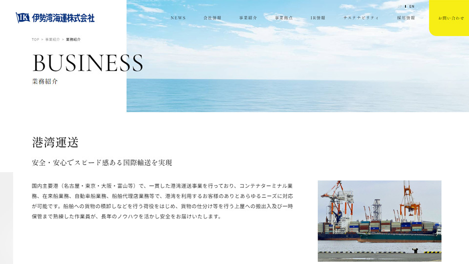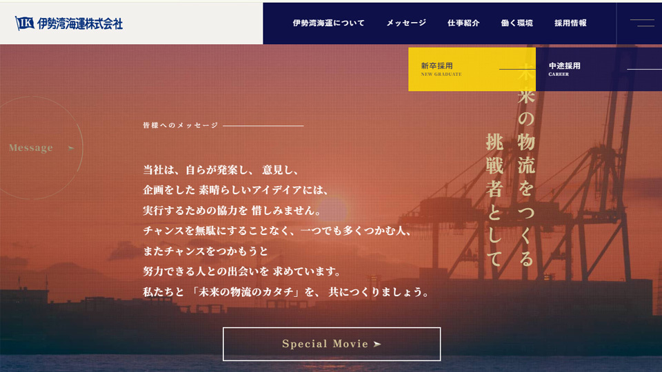 さらに、コーポレートサイト用の情報Movie、伊勢湾海運のイメージMovieを制作。